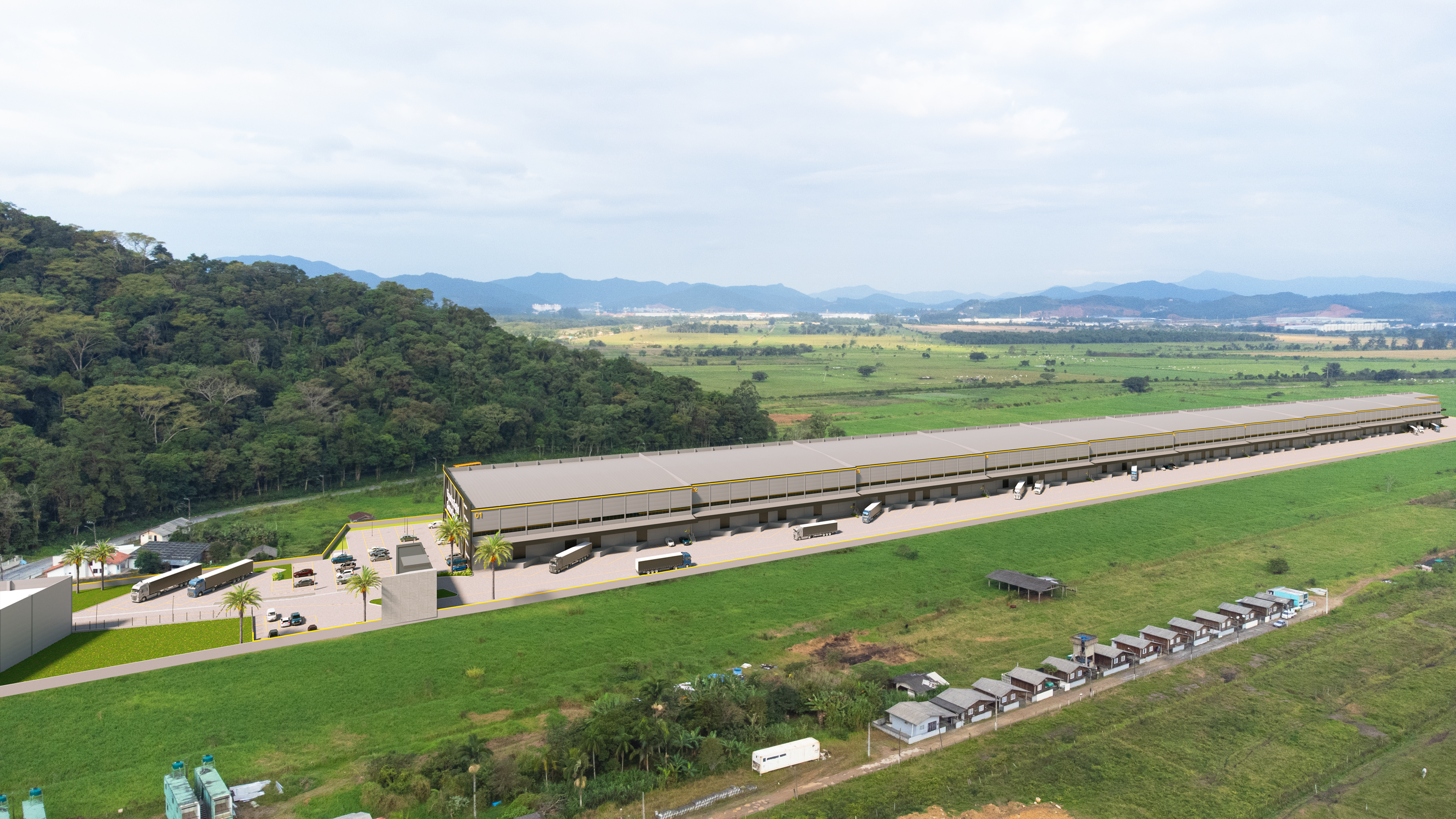 Com aproximadamente 36.000 m² de área logística, o empreendimento oferece galpões com padrões elevados de infraestrutura, projetados para otimizar operações de armazenagem, distribuição e transporte. A estrutura conta com estacionamento para veículos de pequeno e grande porte, acesso controlado para veículos de carga e áreas planejadas para garantir fluidez, segurança e eficiência operacional. Além disso, o projeto contempla uma área comercial voltada para a frente do empreendimento, agregando conveniência, visibilidade e funcionalidade ao conjunto.